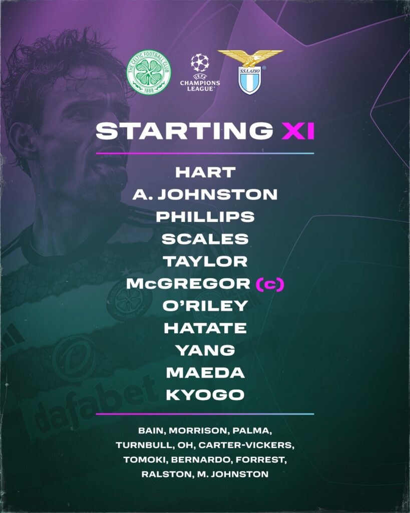 Let’s hope the bhoys can make it a night to remember. Here is the full team for this evening. Yang gets the nod on the wing and Matt Phillips gets his second start.